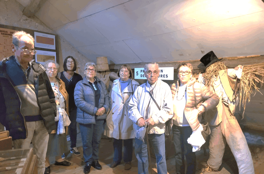Le groupe a pu découvrir  dans une vieille grange du 15è siècle les différents corps de métiers rattachés au milieu agricole, les outils utilisés et la vie quotidienne dans les fermes nivernaises. Une exposition retraçait les différentes étapes de la transformation du blé en pain. Quelques souvenirs d’enfance sont remontés à la surface…