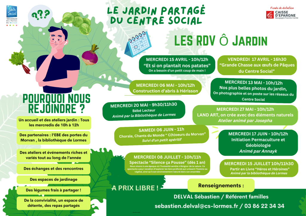 Le projet “Jardin en famille, se nourrir, comprendre et partager” concerne tous les secteurs d’activités du Centre Social intercommunal des Portes du Morvan . Il s’agit d’offrir la possibilité de jardiner aux personnes ne bénéficiant pas d’espace extérieur, mais aussi d’en faire un lieu de rencontres d’échanges et de convivialité entre les habitantes et les habitants du territoire.